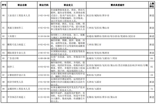 人民网北京7月22日电 (记者宋子节、温璐)据人社部消息,中国就业培训技术指导中心近期组织102个定点监测城市公共就业服务机构,收集汇总2022年第二季度人力资源市场供求关系较为紧张的招聘、求职需求职业岗位信息,形成“2022年第二季度全国招聘大于求职‘最缺工’的100个职业排行”。